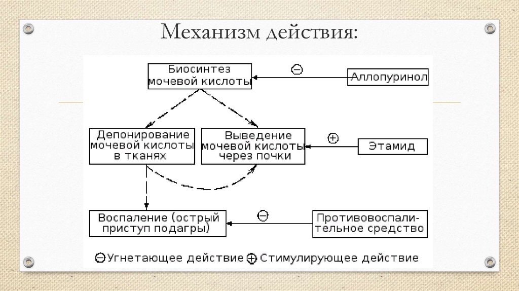 накопления в организме мочевой к-ты под влиянием ряда лекарственных средств и