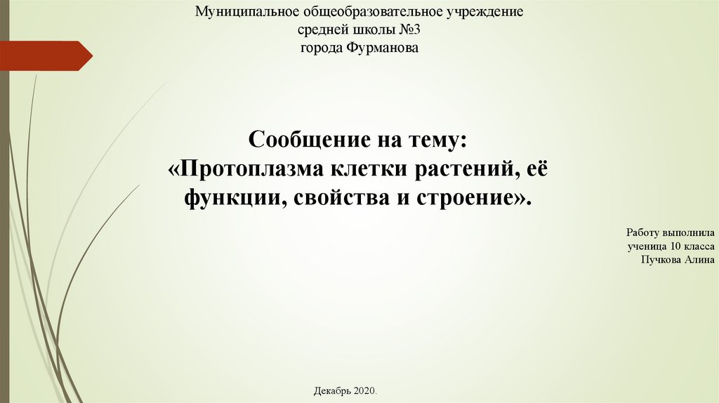 Все жизненно важные процессы растительного организма происходят в протоплазме. Ее свойства определены