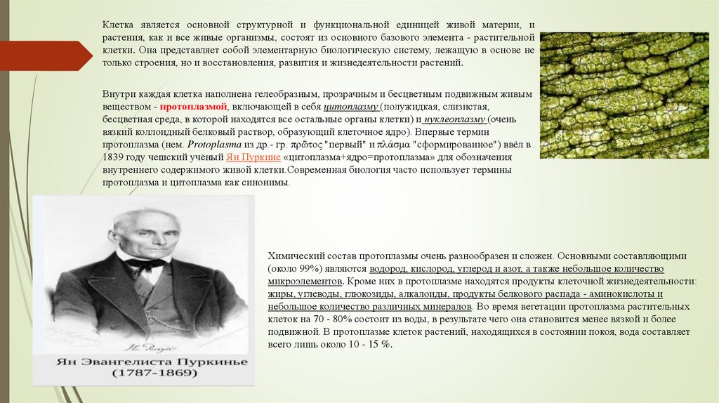 1839 году чешский учёный Ян Пуркине «цитоплазма+ядро=протоплазма» для обозначения