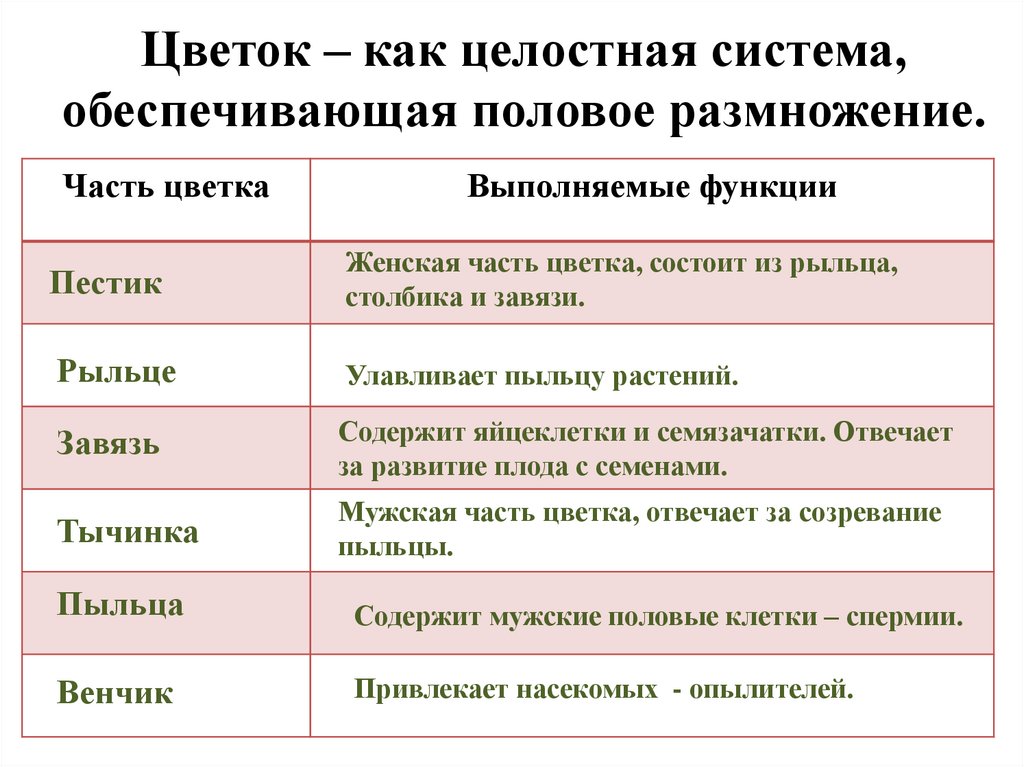 Цветок – как целостная система,обеспечивающая половое размножение.