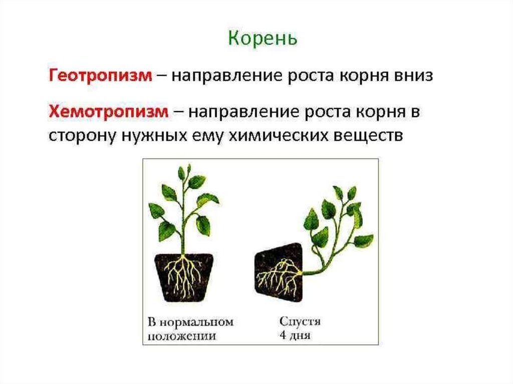 Положительный геотропизм – у корня