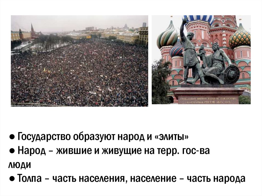 ● Государство образуют народ и «элиты»● Народ – жившие и живущие на терр. гос-ва