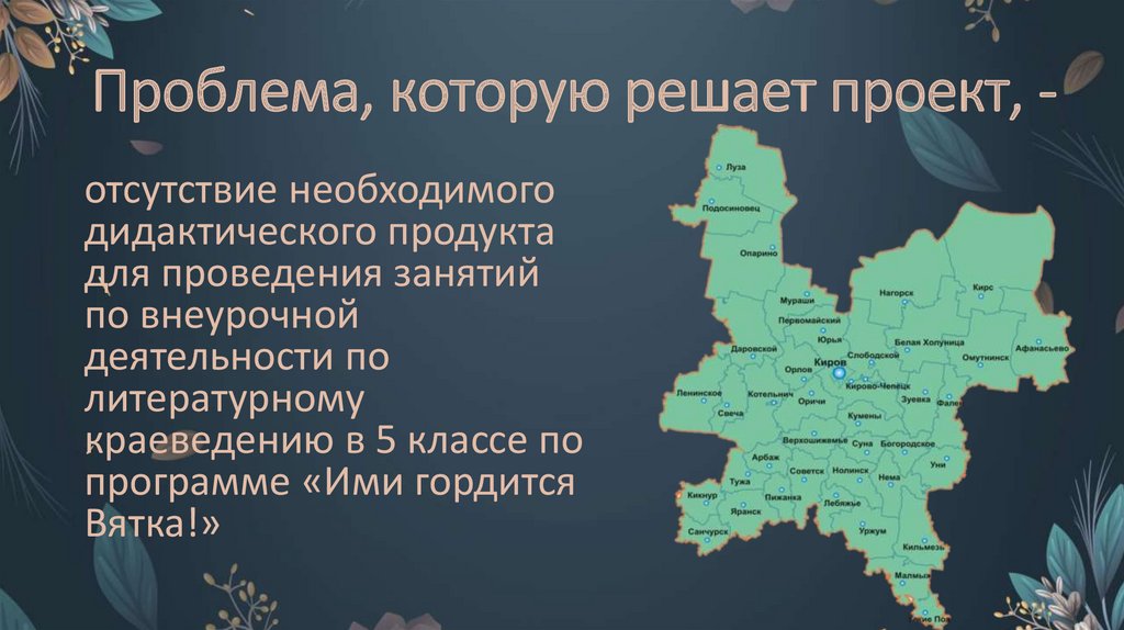 Проблема, которую решает проект, отсутствие необходимогодидактического продукта