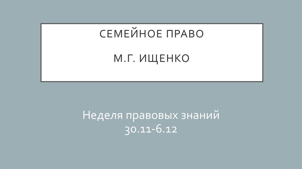 СЕМЕЙНОЕ ПРАВОМ.Г. ИЩЕНКО