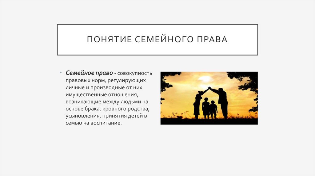 ПОНЯТИЕ СЕМЕЙНОГО ПРАВА• Семейное право - совокупность