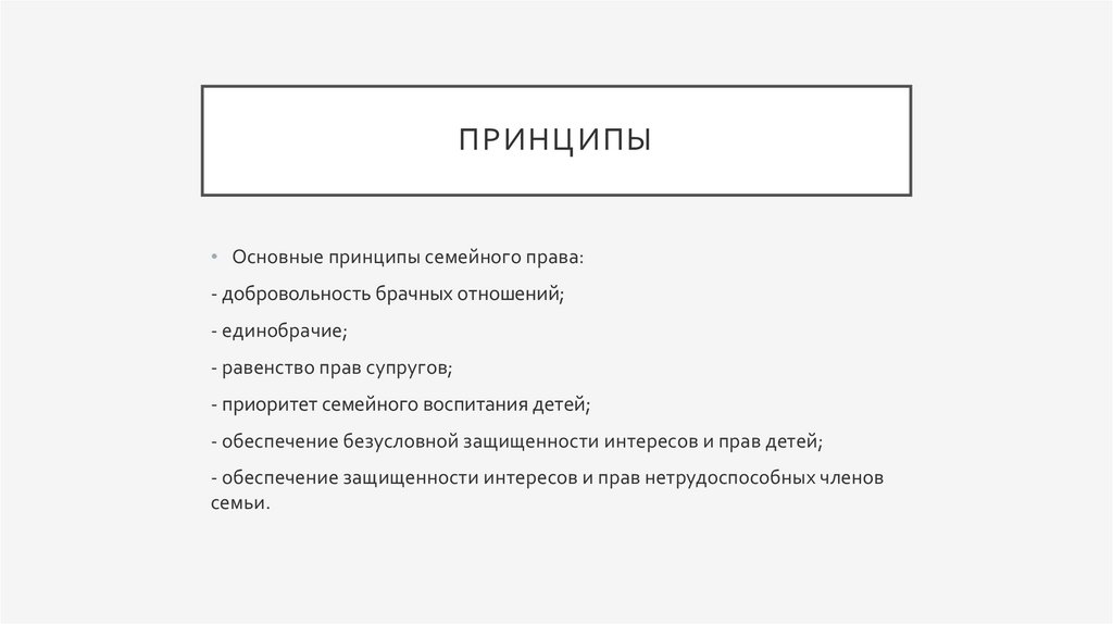 ПРИНЦИПЫ• Основные принципы семейного права: