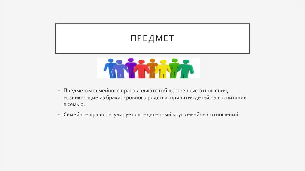ПРЕДМЕТ• Предметом семейного права являются общественные отношения,