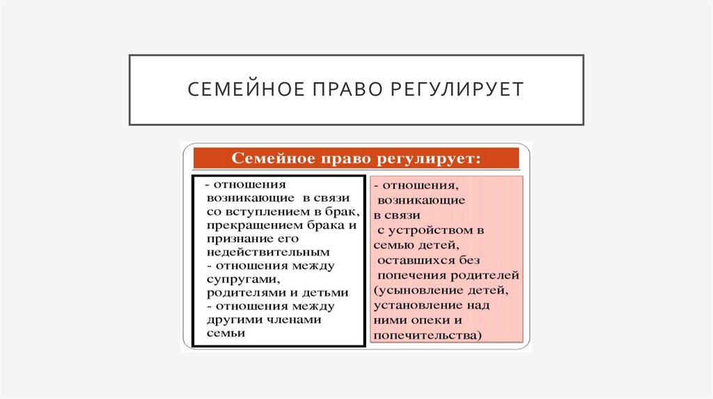 • Семейное право регулирует определенный круг семейных отношений.
