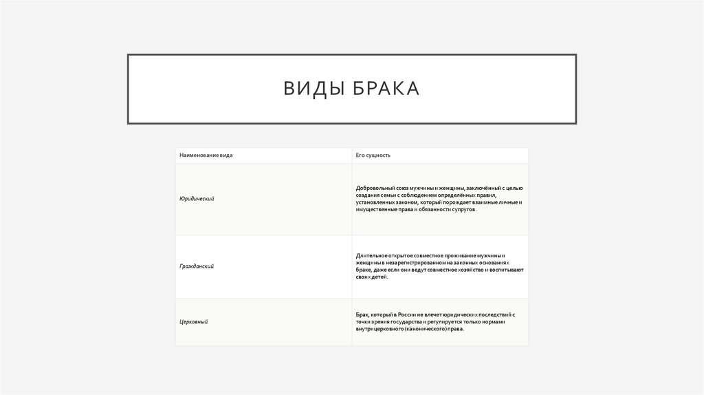 ЧТО ТАКОЕ БРАК?• Брак — это признанная обществом форма отношений между мужчиной и