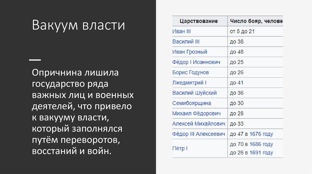 Вакуум властиОпричнина лишила