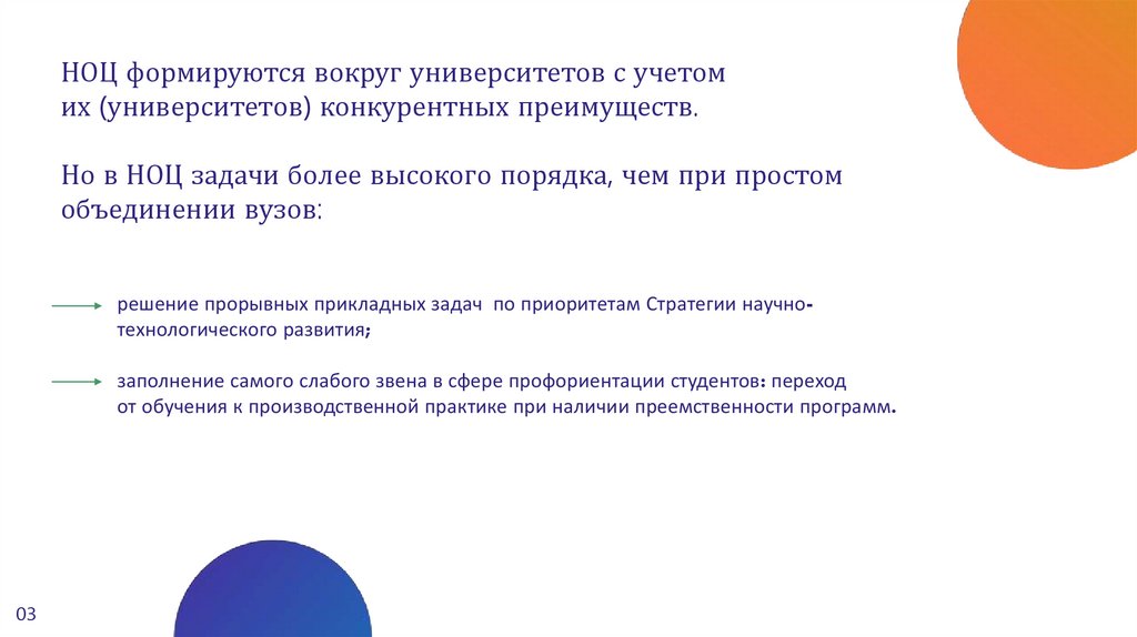 НОЦ формируются вокруг университетов с учетомих (университетов) конкурентных преимуществ.