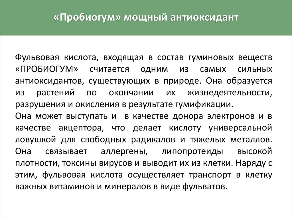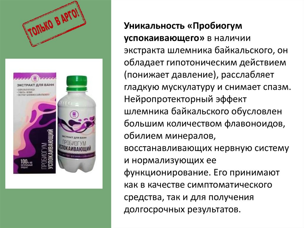 Уникальность «Пробиогумуспокаивающего» в наличии