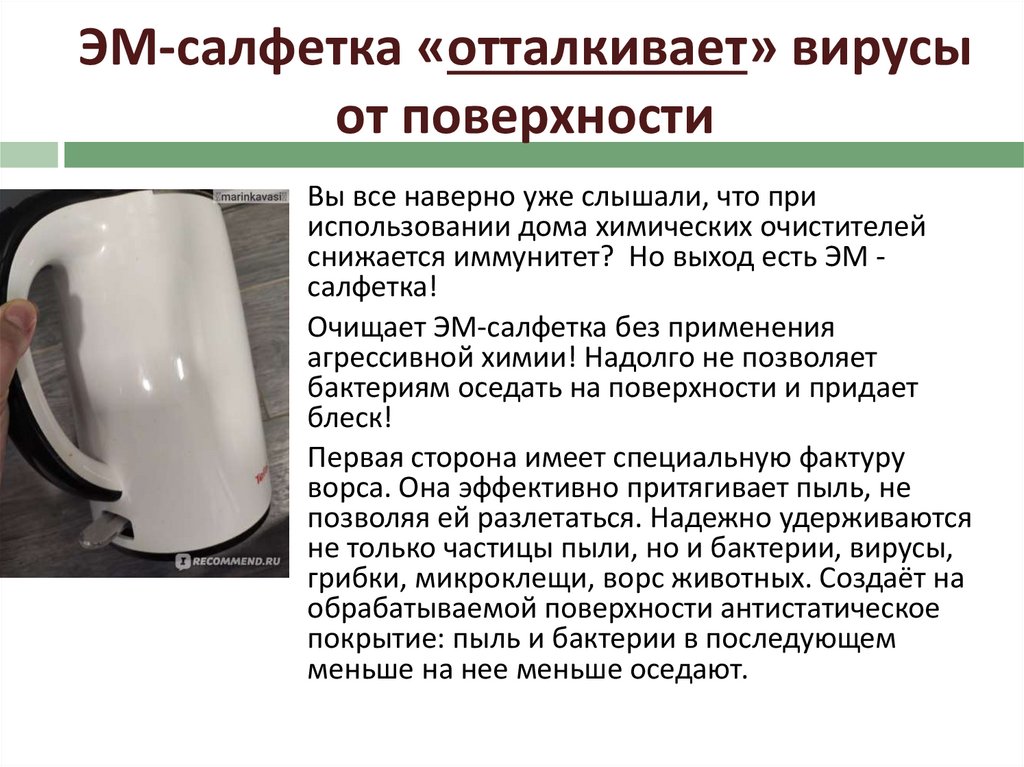 ЭМ-салфетка «отталкивает» вирусыот поверхности