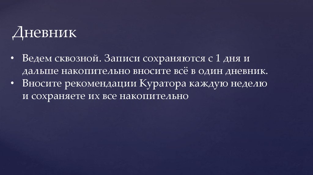Дневник• Ведем сквозной. Записи сохраняются с 1 дня и