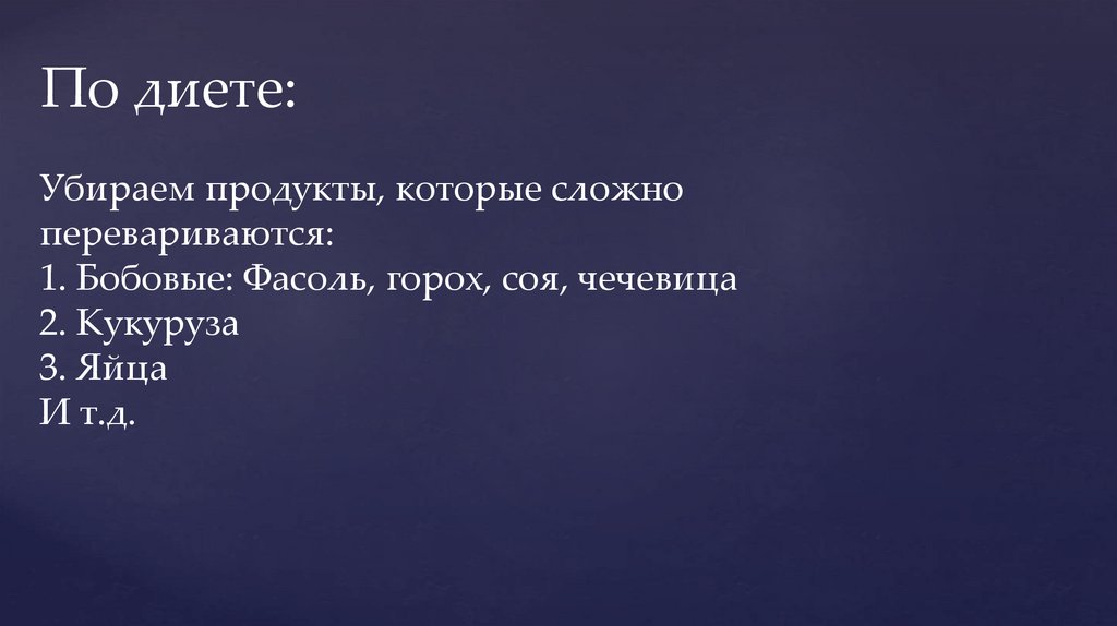 Как вводить диету:1) Убираете продукты, которые нужно убрать по очереди, по