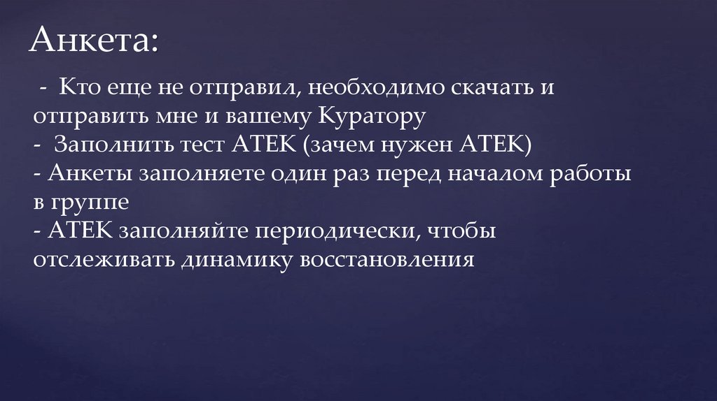 - Заполнить тест АТЕК (зачем нужен АТЕК)
