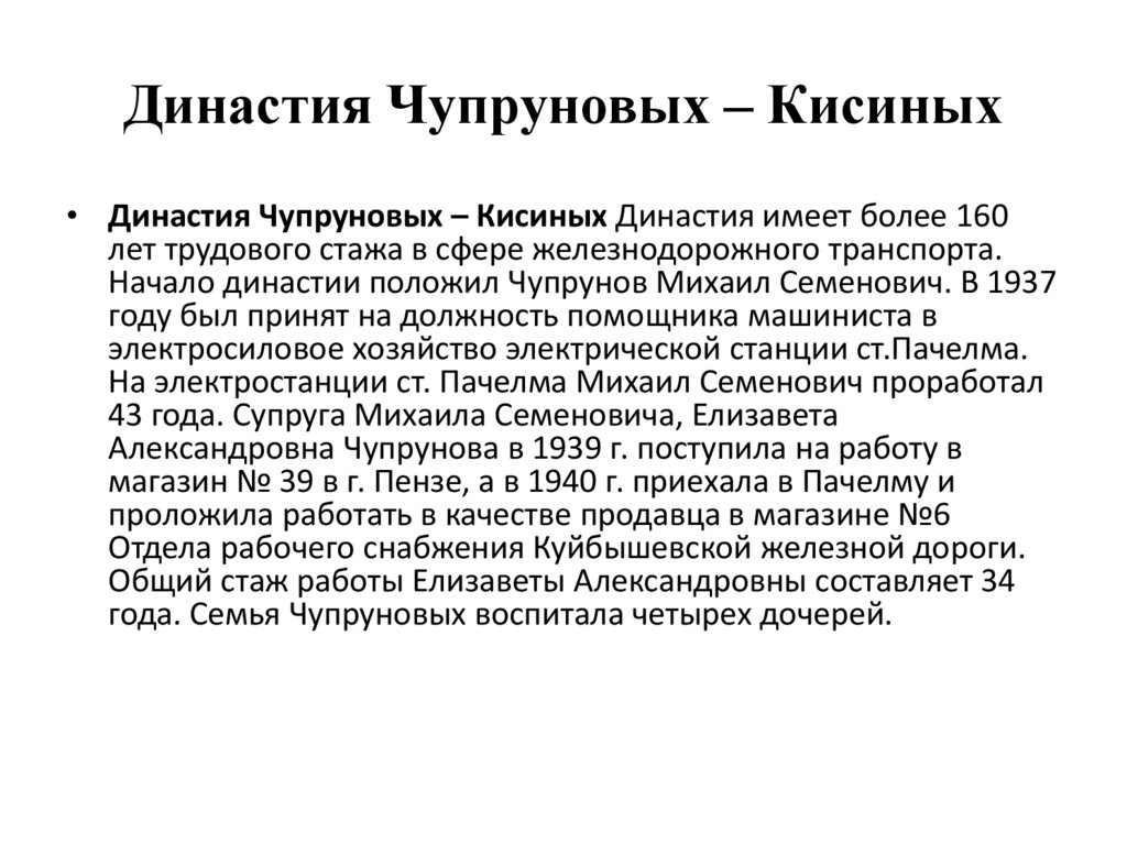 Династия Чупруновых – Кисиных• Династия Чупруновых – Кисиных Династия имеет более 160