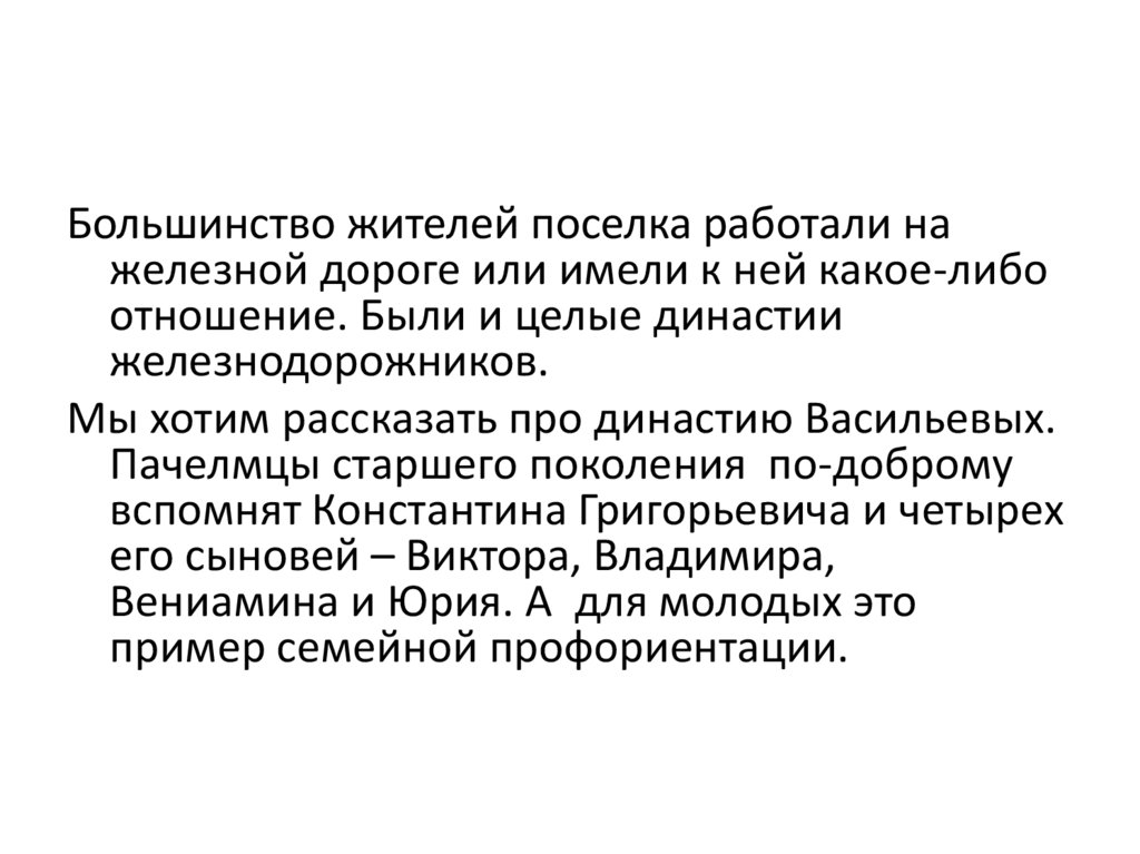 Большинство жителей поселка работали нажелезной дороге или имели к ней какое-либо