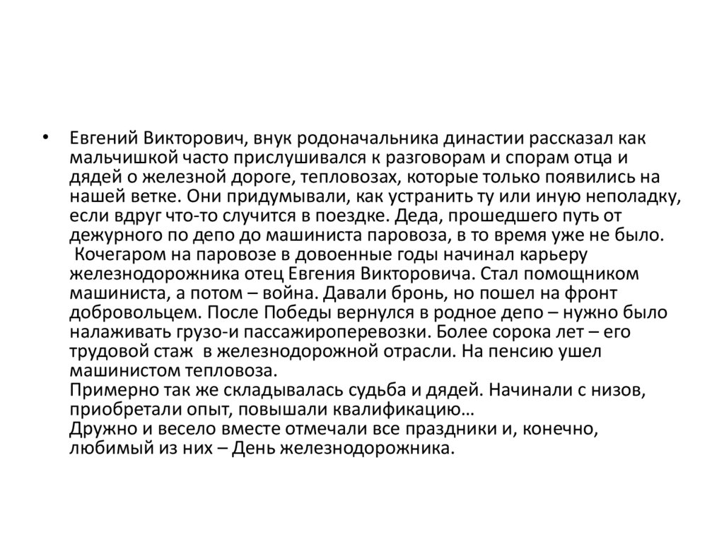 железнодорожника отец Евгения Викторовича. Стал помощником