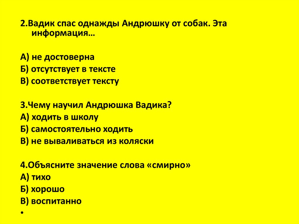 2.Вадик спас однажды Андрюшку от собак. Этаинформация…