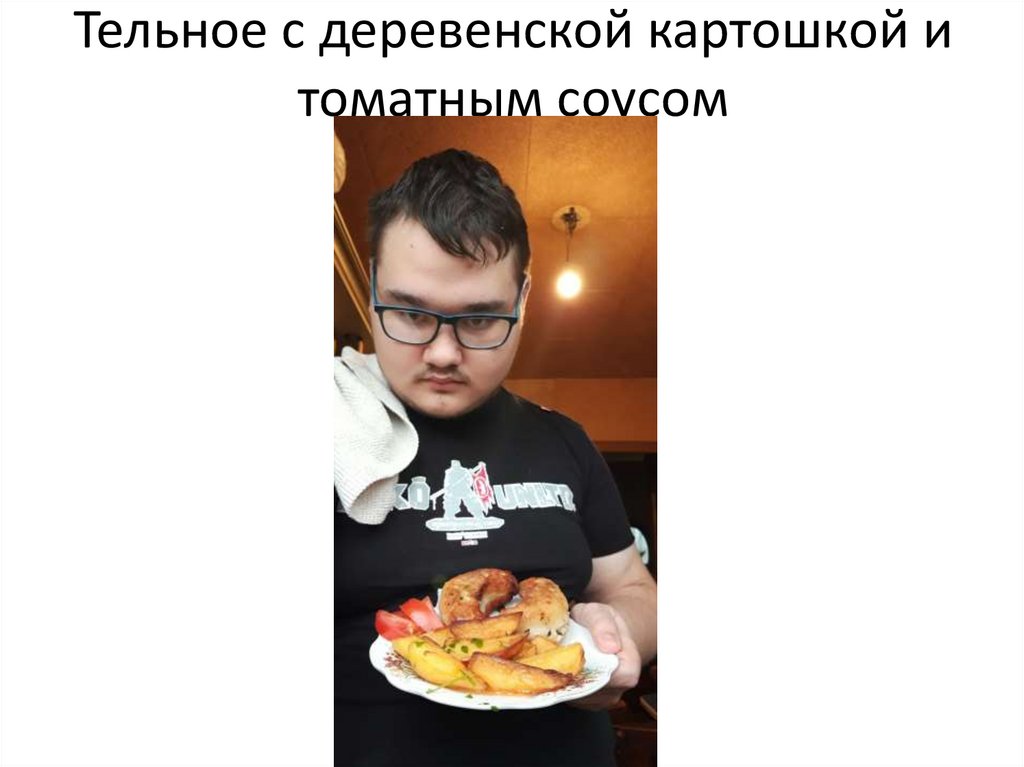 Тельное с деревенской картошкой и томатным соусом