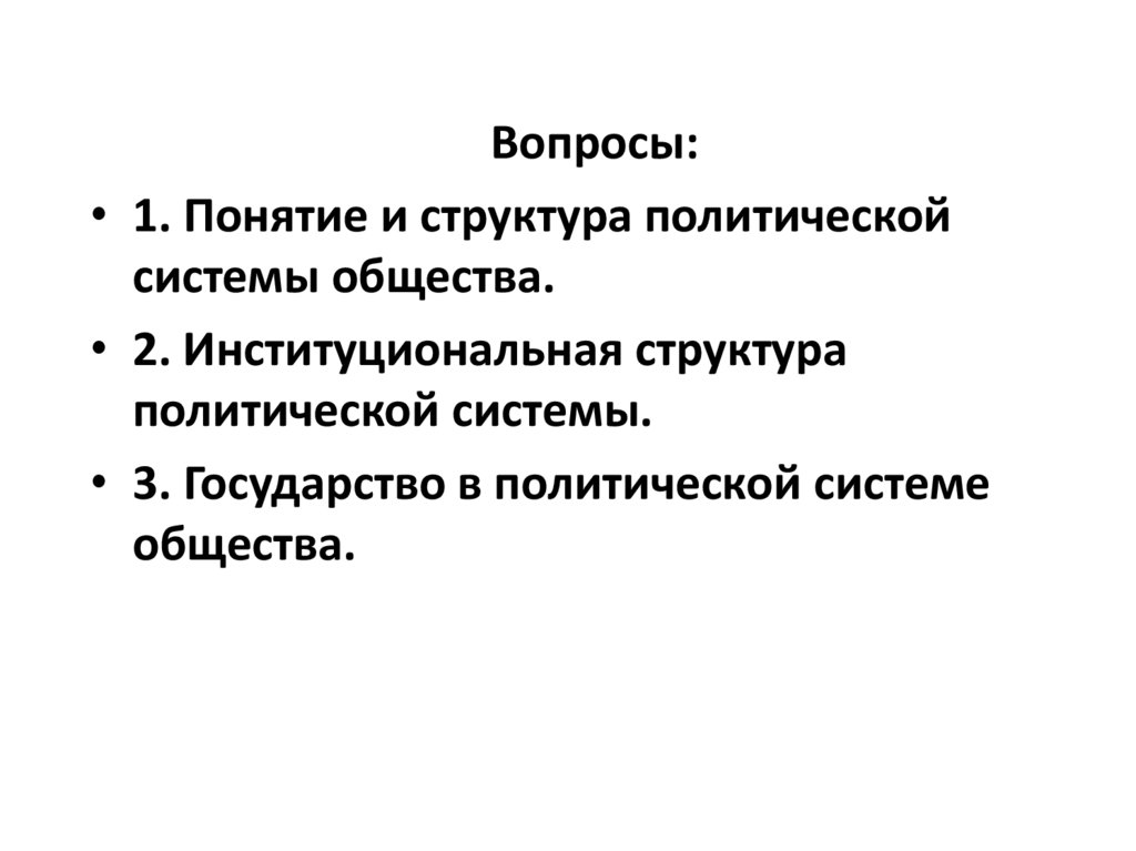 Вопросы:• 1. Понятие и структура политической