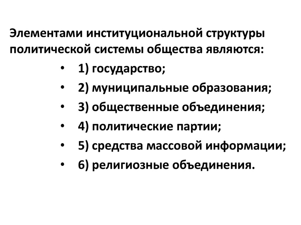 Элементами институциональной структурыполитической системы общества являются: