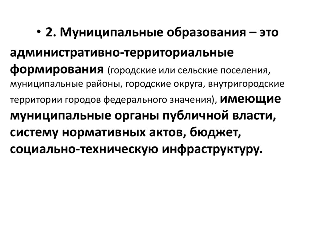 • 2. Муниципальные образования – этоадминистративно-территориальные