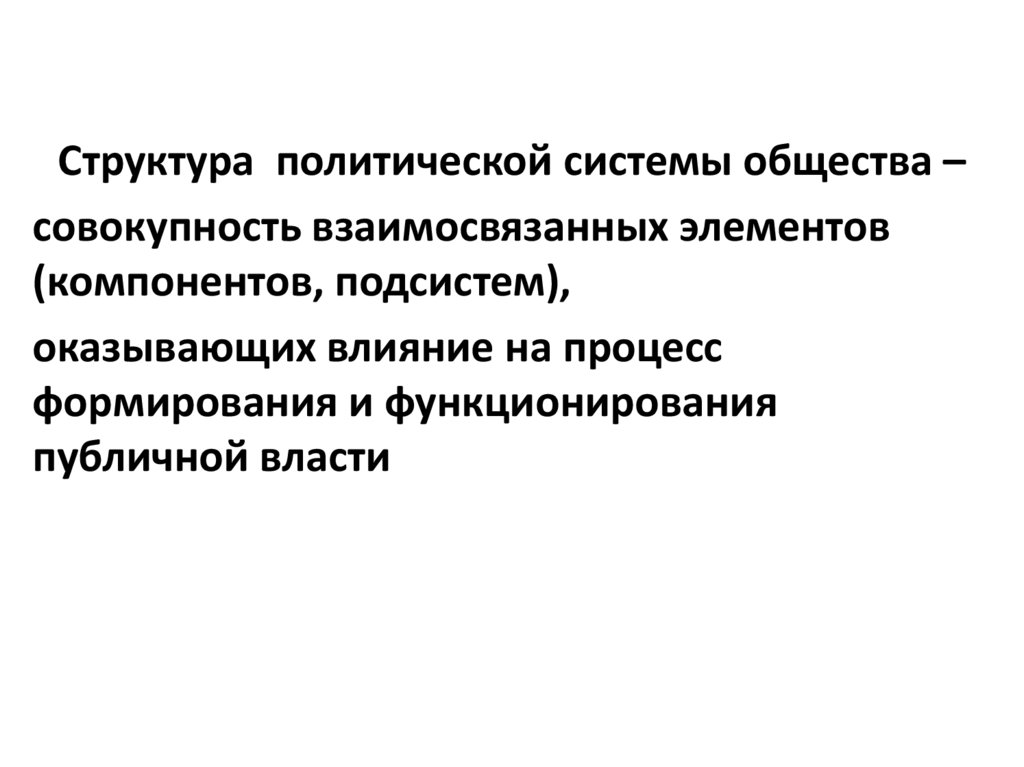 Структура политической системы общества –совокупность взаимосвязанных элементов