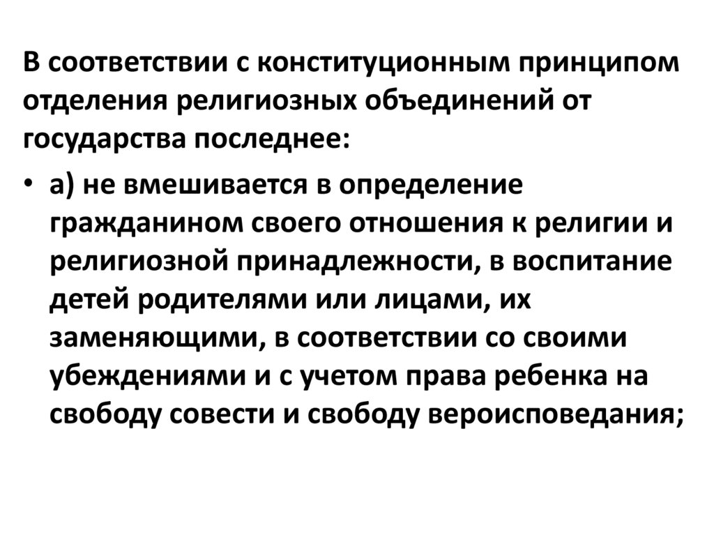 религиозной принадлежности, в воспитание