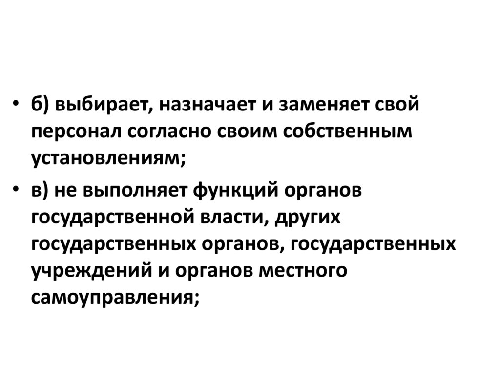 • б) выбирает, назначает и заменяет свойперсонал согласно своим собственным