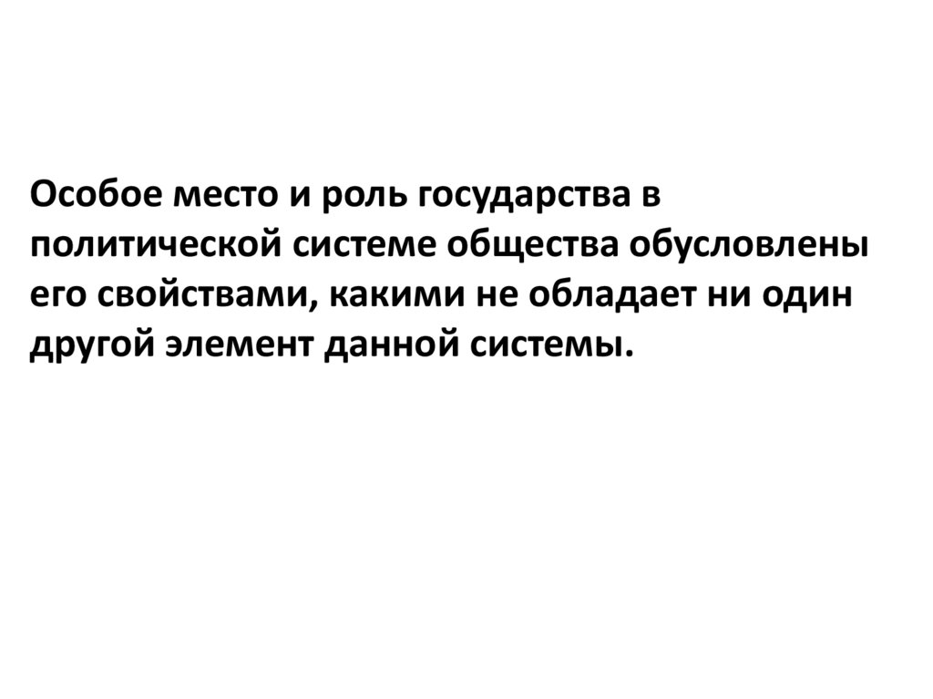 Особое место и роль государства вполитической системе общества обусловлены