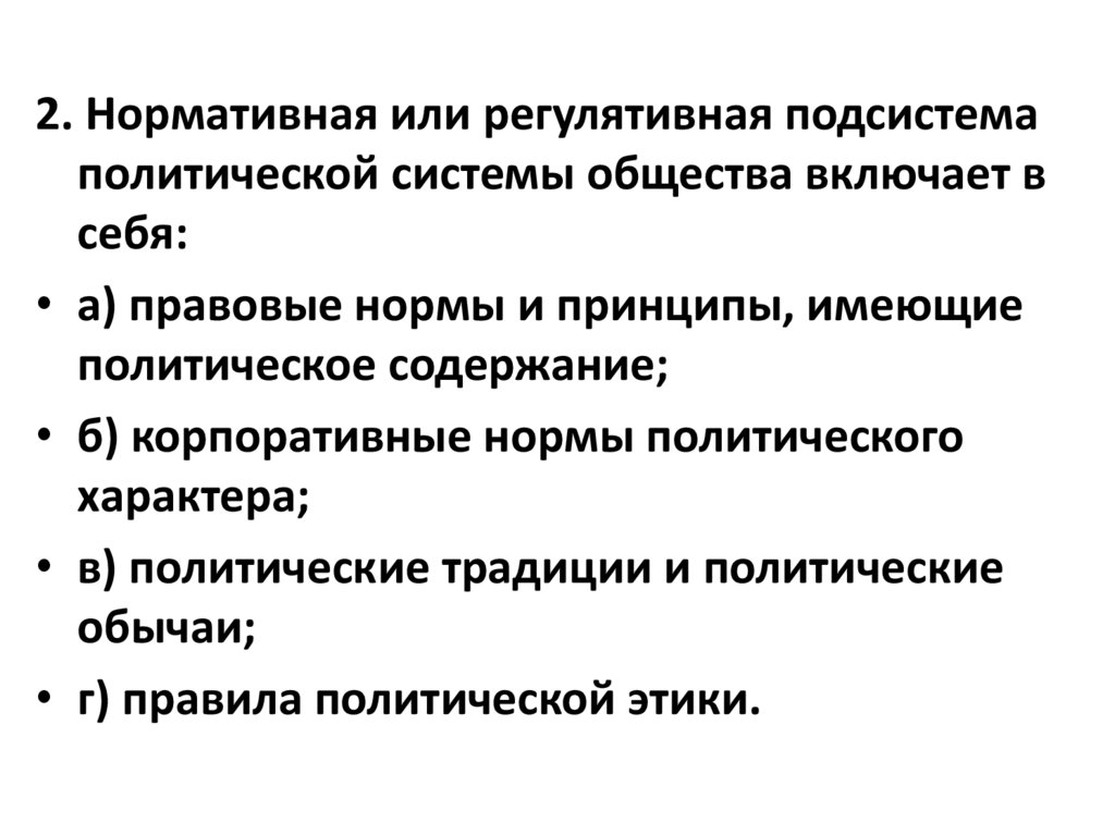 2. Нормативная или регулятивная подсистемаполитической системы общества включает в