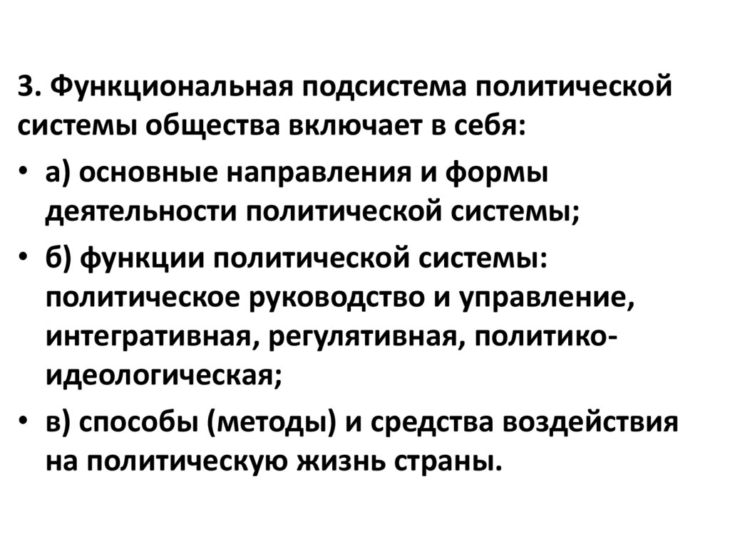 • б) функции политической системы: