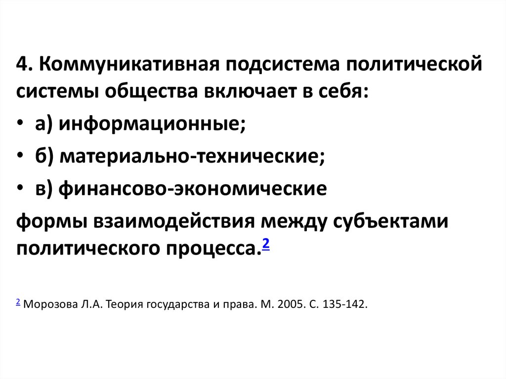 4. Коммуникативная подсистема политическойсистемы общества включает в себя: