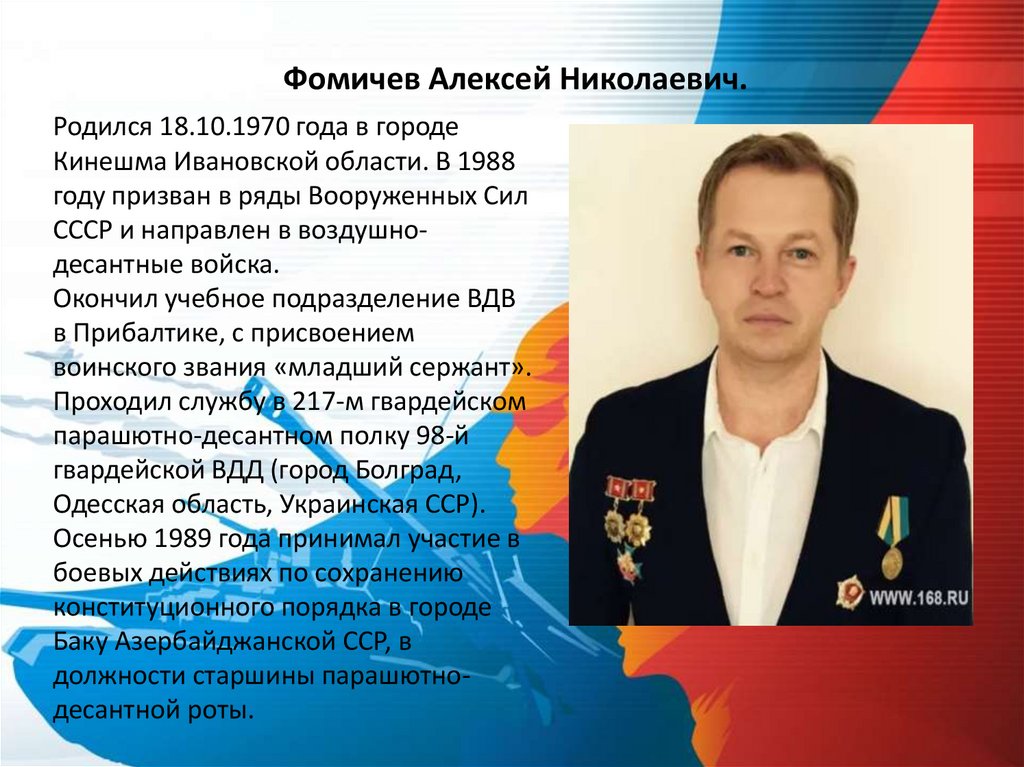Фомичев Алексей Николаевич.Родился 18.10.1970 года в городе