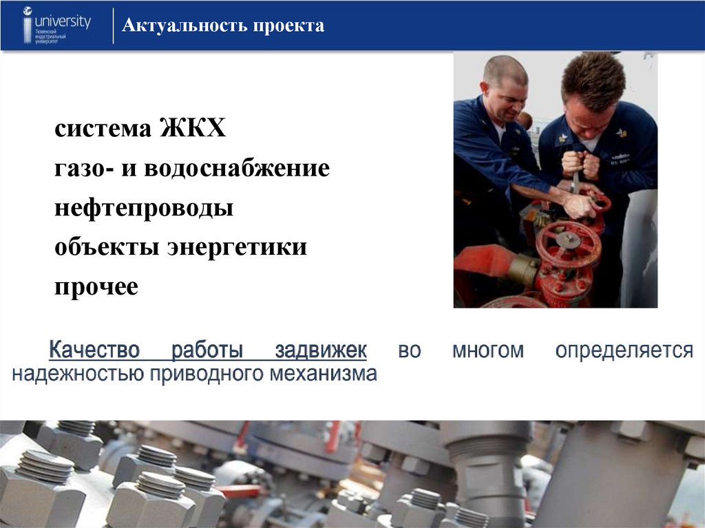 Актуальность проектаЗадвижки - трубопроводная арматура