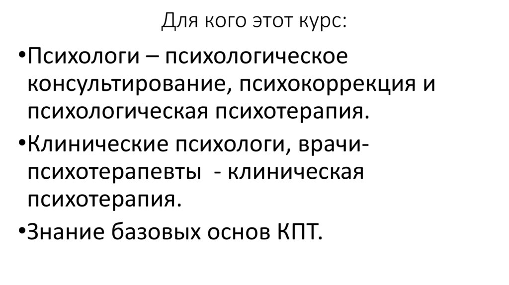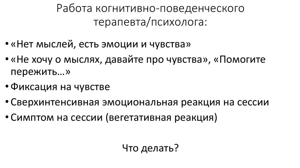 Работа когнитивно-поведенческоготерапевта/психолога: