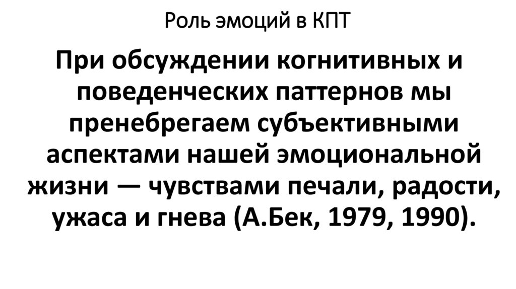 Роль эмоций в КПТПри обсуждении когнитивных и