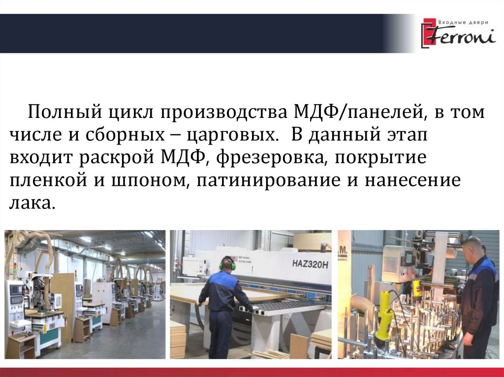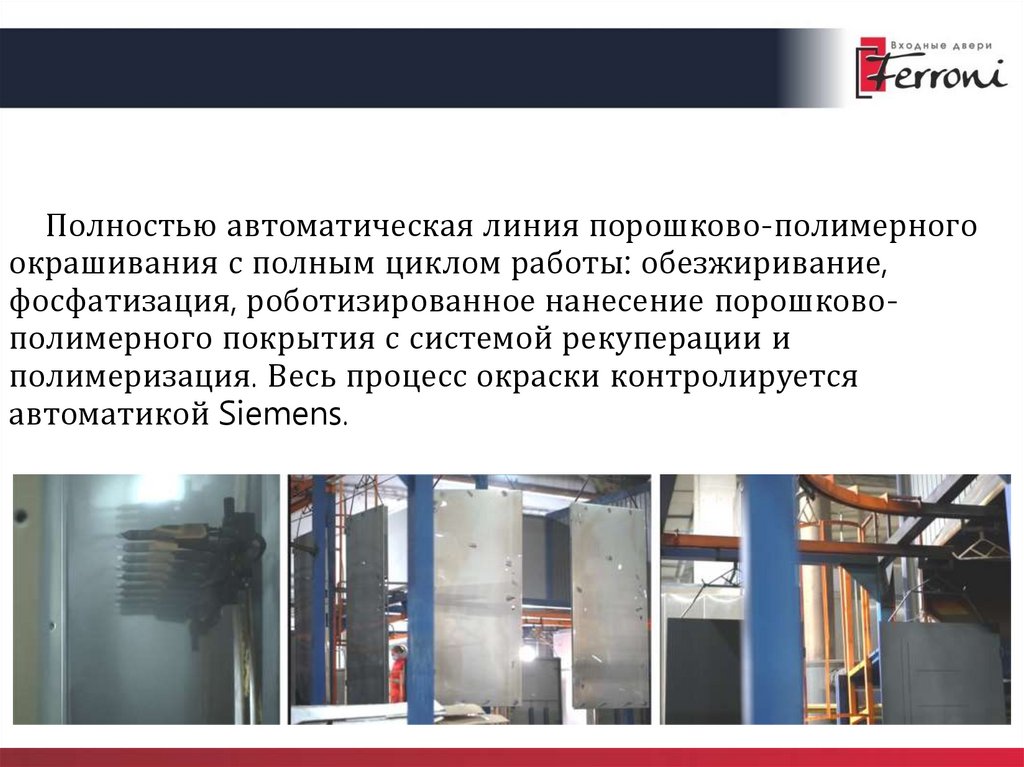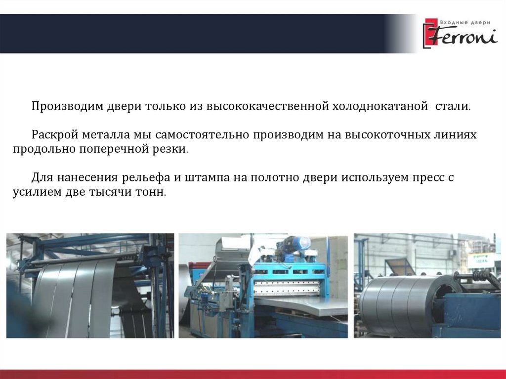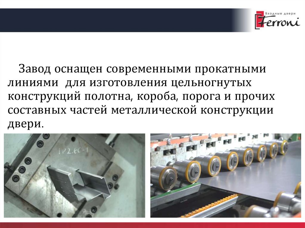 2 производственные площадки Ferroni 1 / Ferroni 2Производственные мощности завода позволяют производить 160 000 дверей в