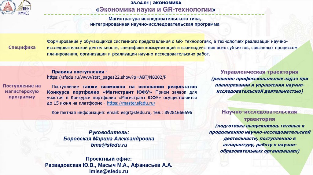 Контактная информация: email: esgr@sfedu.ru, тел.: 89281666596