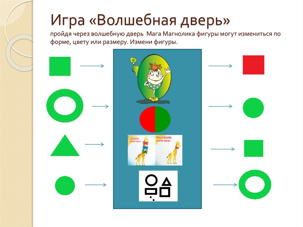 Игра «Волшебная дверь»пройдя через волшебную дверь Мага Магнолика фигуры могут измениться по