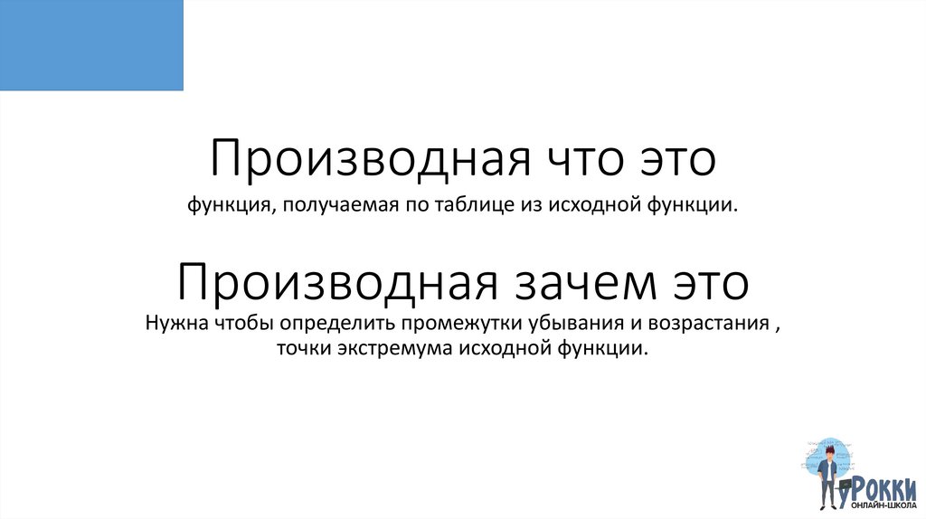 Производная что этофункция, получаемая по таблице из исходной функции.