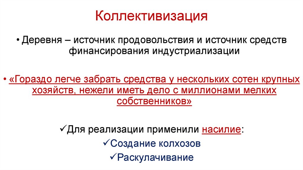 Коллективизация• Деревня – источник продовольствия и источник средств
