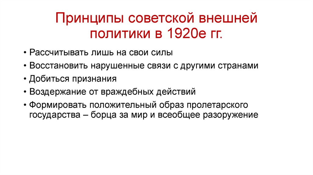 Международные отношения в 1920-е годы. Принципы советской внешней политики