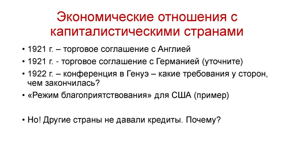 • 1921 г. - торговое соглашение с Германией (уточните)