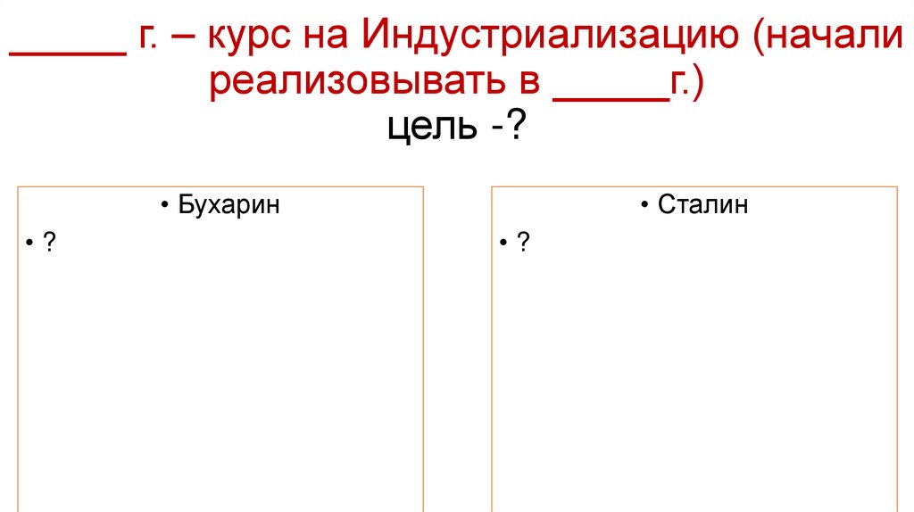 _____ г. – курс на Индустриализацию (началиреализовывать в _____г.)