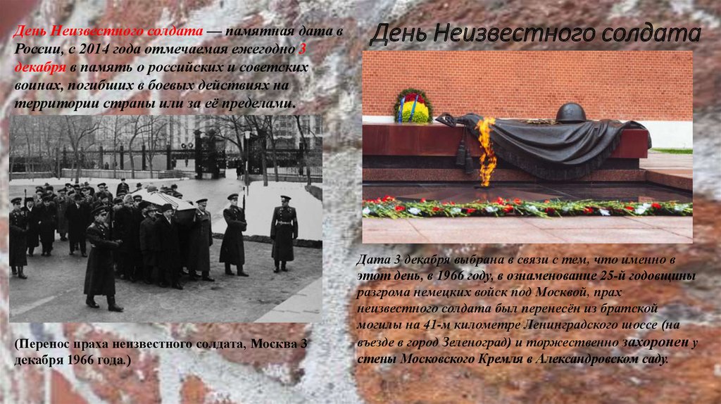 День Неизвестного солдата — памятная дата вРоссии, с 2014 года отмечаемая ежегодно 3