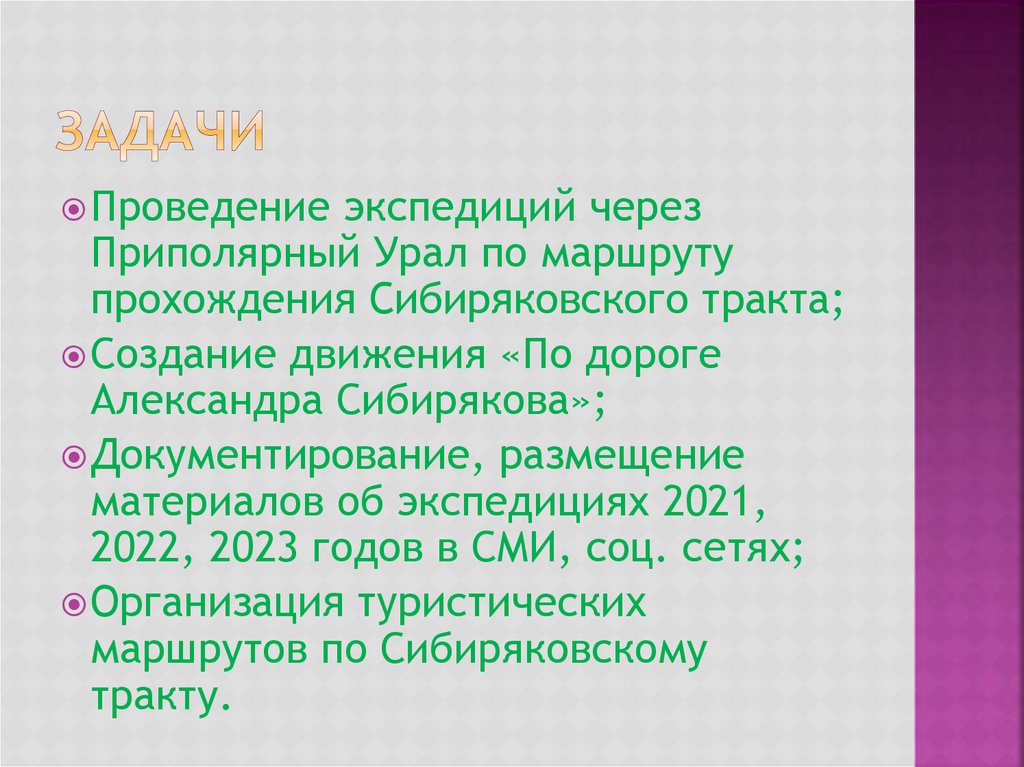 прохождения Сибиряковского тракта;