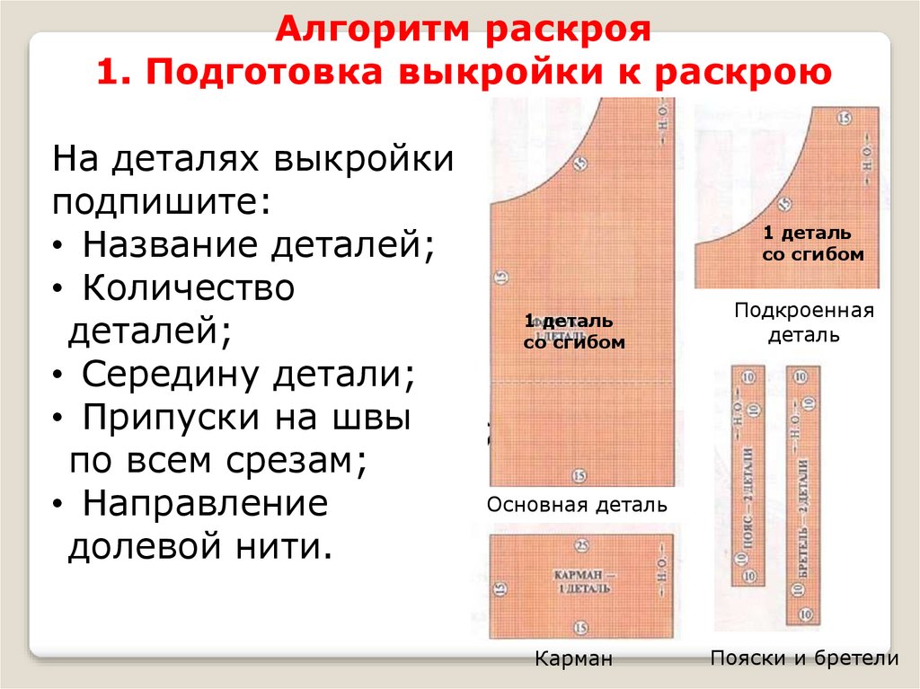 Алгоритм раскроя1. Подготовка выкройки к раскрою